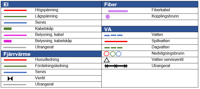 OBS! Andra ledningsägare som anvisar sina ledningar kan ha andra bestämmelser och färger.