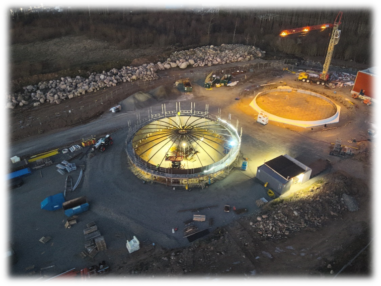 Under juli och augusti genomfördes pålningsarbetet. Samtidigt startade grundarbetet för plattan till teknikhuset samt ackumulatorfundamentet. Gjutningarna skedde i omgångar och var klara den 15:e december. I slutet av december etablerade sig entreprenören för ackumulatortanken. Arbetet följer tidplanen där förhoppningen är att vara klara med projektet i slutet av 2026